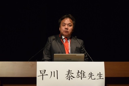 浜松医科大学理事・副学長/国立国際医療研究センター 臨床研究センター長、渡邉裕司先生の開会の言葉に続き、第1部「新しい形の治験」では、抗がん剤開発に関する承認審査の制度や、電子カルテデータの活用やIOTの進歩によって得られるリアルワールドデータによって、今後の治験の在り方がどう変わっていくかなどについて発表いただきました。また、肺がん、消化器がんの合計で約1万例が登録されたSCRUM-Japanでの遺伝子スクリーニングプラットフォームにより、新薬の企業・医師主導治験が展開していることを、東病院長の大津より報告されました。