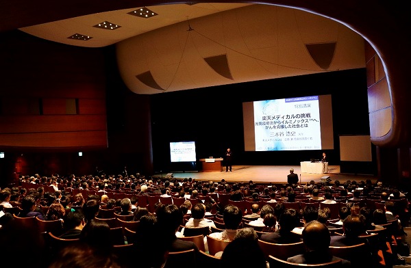 午後の特別講演は、楽天メディカル社 会長兼最高経営責任者の三木谷浩史氏をお招きし、「楽天メディカルの挑戦 光免疫療法からイルミノックス™へ、がんを克服した社会とは」と題して、同社が取り組んでいる開発状況と新しい医療エコシステムの構築を目指した戦略についてご紹介いただきました。質疑応答では、がん克服を目指した三木谷氏のアントレプレナーとしての志、そして異業種からの医薬品、医療機器開発への出資及びヘルスケア事業への挑戦、さらには「現場に近い経営者」としての経営方針について会場中の方が身を乗り出して聞き入っていました。